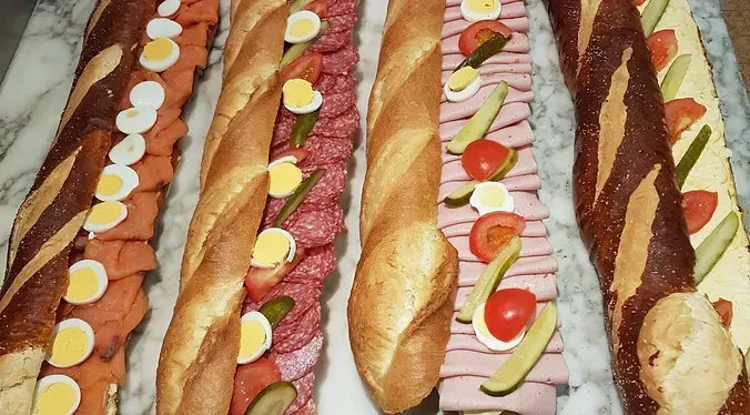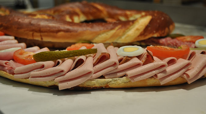 Auf Bestellung fertigen wir lange belegte Brote oder Riesenbrezel für den gemeinsamen Znüni im Geschäft oder für eine Feier.